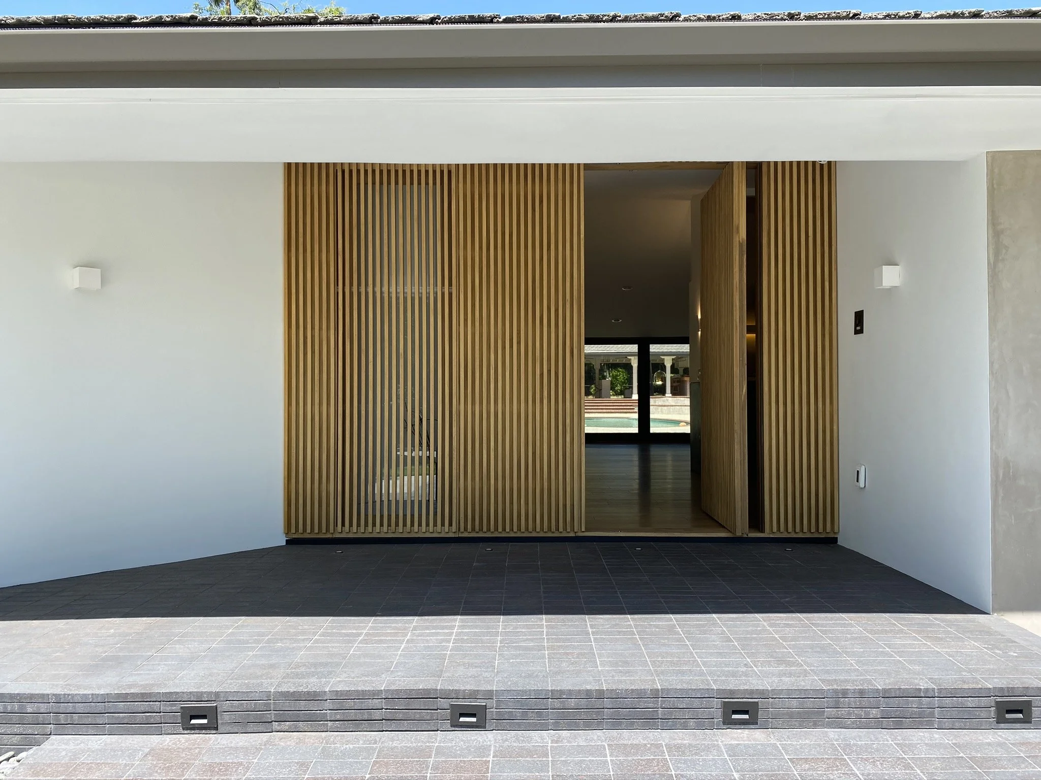 Length, a ground-hugging form, and deep eaves are typical characteristics of a ranch house. This ranch’s low, overarching roof was the main inspiration for its remodel. The original flat ceiling was replaced with a vaulted one; the demising walls were traded in for a sense of openness and fluidity of circulation. The changes make the roof an indoor participant in this iconic California-style house. At the front, the porch is reimagined as an extension of the foyer, and in the back, a large new opening ties the house to its backyard.