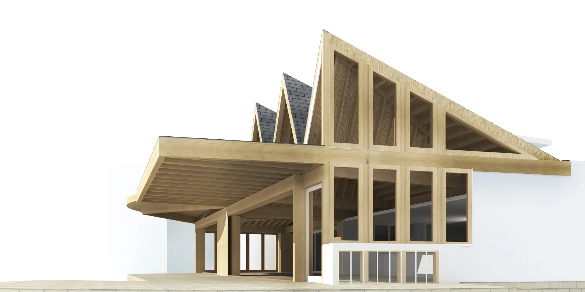 A weekend house for the extended family to share. One roof rests on private boxes containing two bedrooms and a kitchen. The meeting space in between connects to the surroundings from all sides.